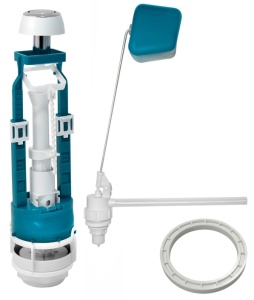 Арматура (ИНКОЭР) б/п пла/кн И - СБкпм-Бм-Б-В Р (2-1-1-4) - комплект арматуры для бачка к унитазу. Универсальный сливной клапан СБкпм кнопочный с одним режимом слива.