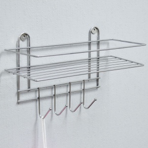 "Полка настенная 33*12,5*21см 4 крючка хром Lecco Plus