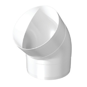 Колено круглое 45° предназначено для соединения двух пластиковых каналов между собой под углом 45 градусов. Воздуховоды вставляются внутрь соединителя с двух сторон. Является одним из элементов пластиковой вентиляции для квартиры, дома и др.
