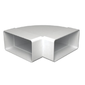 Колено плоское горизонтальное предназначено для соединения двух пластиковых воздуховодов под углом 90°. Соединение осуществляется в горизонтальной плоскости, воздуховоды и колено соединяются напрямую.