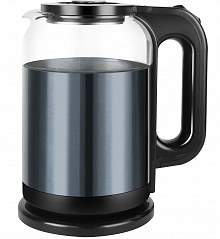 Ручка и крышка выполнены из пластика черного цвета,корпус из термостойкого стекла и подсветка во время работы .Прибор выключится автоматически при закипании.