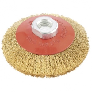 Щетка для УШМ , М14, 100 мм, с щетиной из витой нержавеющей проволоки диаметром 0,3 мм, используется для щадящей очистки металлических, деревянных или пластиковых поверхностей от незначительных загрязнений и ржавчины, а также остатков лакокрасочных материалов. Поможет придать поверхности шероховатость или матовость. Насадка является универсальной и подходит для обработки как плоскостей, так и углов, а также других труднодоступных участков. Оптимальна для обработки изделий из нержавейки. Насадка устанавливается на вал углошлифовальной машины (УШМ). Во время работы следует соблюдать технику безопасности и использовать средства индивидуальной защиты. Щетку применяют в строительстве, на производстве, а также в домашнем хозяйстве.