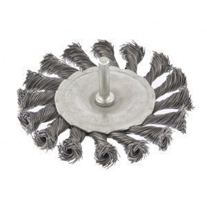 Щетка «чашка» Matrix с латунированной витой проволокой устанавливается на вал УШМ с помощью гайки М14. С ее помощью можно обработать поверхности для снятия тонкого слоя краски или лака, удаления ржавчины и загрязнений. Чашкой диаметром 100 мм можно быстро обработать большие площади при рекомендованных оборотах 8500 об/мин.