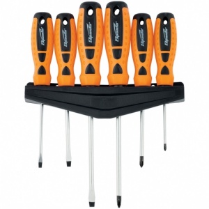 Набор отверток Sparta 11782 укомплектован 6 отвертками с рукоятками двухкомпонентного типа, сильной стороной которых являются противоскользящие свойства. В комплект входят 3 отвертки с прямыми наконечниками и 3 отвертки с крестообразными наконечниками. Наконечники имеют магнитные свойства. Эта особенность значительно упрощает работу с крепежом, особенно – с мелким.
