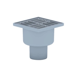 Трап РР вертикальный 50мм с нержавеющей решеткой 100х100мм. Предназначны для приема и отведения в канализационную сеть сточных вод с поверхности пола;