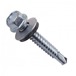 Кровельные саморезы по металлу используются для сквозного монтажа кровельных материалов к металлическим основаниям. Саморез имеет большое сверло, что позволяет ему легко закручиваться в металл. Покрытие – оцинкованное толщиной 4-5 мкм для антикоррозийной защиты. Головка самореза шестигранная 8 мм (диаметр самореза 5,5 мм). Изделия устойчивы к воздействию влаги, температурным перепадам, механическим нагрузкам. Работу по ввинчиванию значительно облегчит бита, имеющая шестигранное отверстие под шляпку 8 мм. Для герметизации соединения саморез комплектуется шайбой с резиновой прокладкой. Срок их службы при правильном использовании может достигать 50 лет. Применяется: