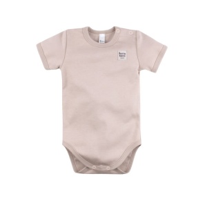 Боди с коротким рукавом выполнен из интерлока. Детали: застежка на кнопки на плече и по низу.