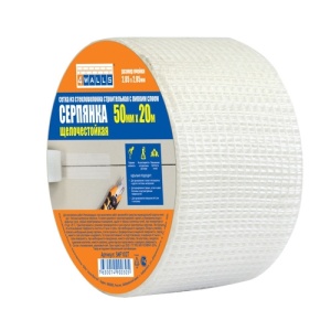 Серпянка - это лента, представляющая собой систему переплетенных стекловолокон. Серпянка имеет сетчатую структуру, что позволяет избегать попадания под ленту воздуха и образования вздутий и неровностей. Сетчатая структура покрыта равномерным слоем клея постоянной липкости, что позволяет качественно, быстро и технологично выполнять работы с ее использованием даже непрофессионалам.