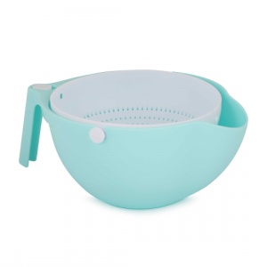 Пластиковый дуршлаг предназначен для промывания любых круп, макаронных изделий, фруктов, ягод, овощей и зелени, их просушивания. А также в нем можно размораживать продукты. Модель представляет собой комбинированный набор, состоящий из дуршлага и чаши для стока воды. Примечательно, что изделие имеет поворотный механизм и позволяет сохранить горизонтальное положение дуршлага при наклоне чаши в момент слива воды. Стопорный механизм позволяет зафиксировать дуршлаг в двух положениях: в основном – для стока влаги, и в дополнительном – в качестве крышки для защиты размораживаемых продуктов от заветривания или насекомых в летний период. У чаши имеется удобный носик для аккуратного слива лишней жидкости, встроенная ручка. Современный пластиковый дуршлаг с чашей легко разбирается, его детали можно мыть в посудомоечной машине.